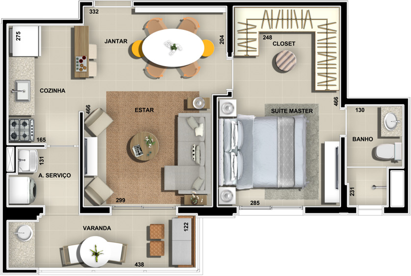PLANTA TIPO 1 / UM DORMITÓRIO (SUÍTE) 1 VAGA NA GARAGEM