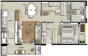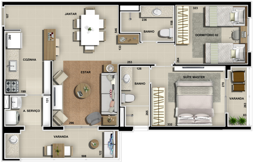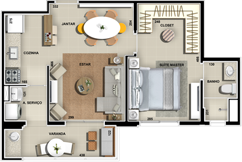 PLANTA TIPO 2 / DOIS DORMITÓRIOS (1 SUÍTE) 2 VAGAS NA GARAGEM