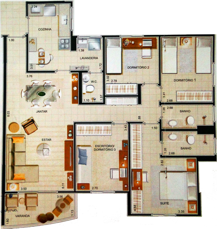 Opção de 03 dormitórios (01 suíte) com sala ampliada